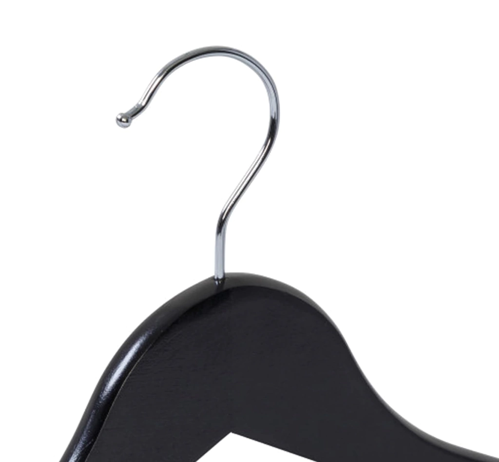 Material de Calidad: Fabricadas en madera de arce pintadas en color negro, estas perchas no solo son estéticas, sino también resistentes.