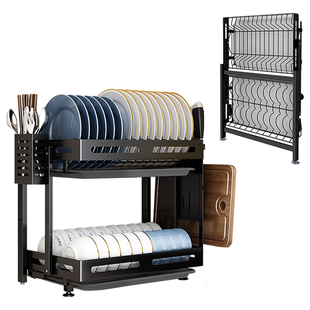 Transforma tu cocina en un espacio más limpio y ordenado con este elegante rack secaplatos plegable.